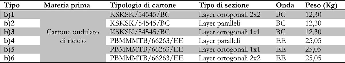The main typologies of recycled cardboard at the disposal of the co-proposer used for the development of the Panel System were the following: